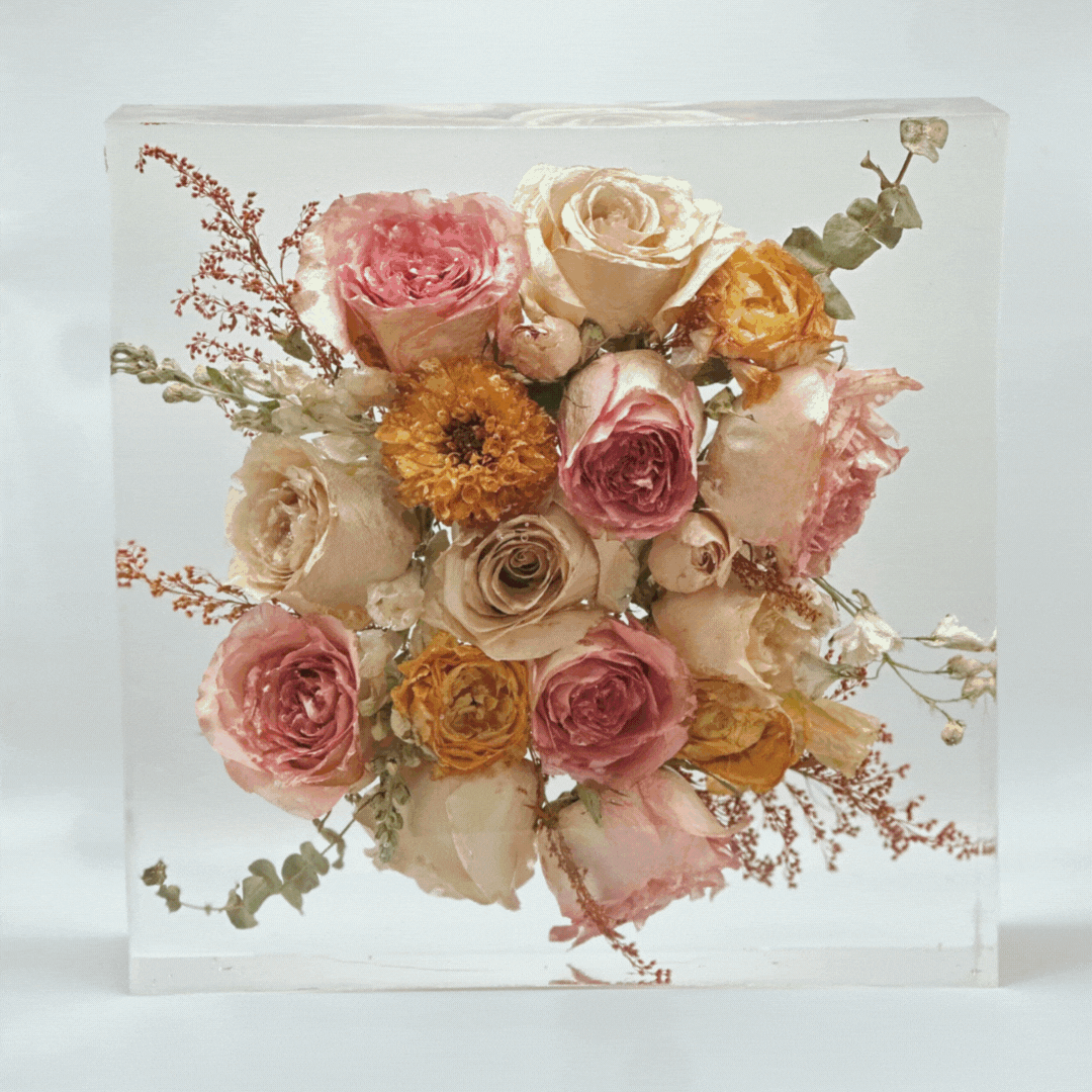 Turn your bridal bouquet into a timeless keepsake with professional wedding flower preservation in resin. We transform your most meaningful blooms into heirloom-quality art you’ll treasure forever.
